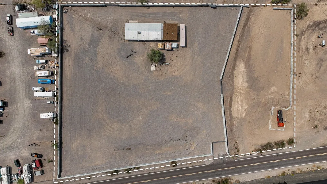 Prime commercial opportunity! This spacious lot is parallel to I-10 and offers excellent visibility, easy access, and TWO entrances for added convenience, perfect for business use or future development. Right under 3 acres, this lot is zoned General Commercial. 2 Bed, 1 Bath home (fixer-upper). Brand new electrical throughout. Two 220 ton mini-split units to be installed. Fully fenced for privacy & security. 4 RV hookups, three-car garage with a brand-new roof. Additional storage buildings plus Connex box. Plenty of space for parking, storage, or expansion. Located in Quartzsite, Arizona, just off Interstate 10, a high-traffic area perfect for commercial visibility. Whether you're looking to run a business, invest, or build your dream setup, this property offers serious potential.