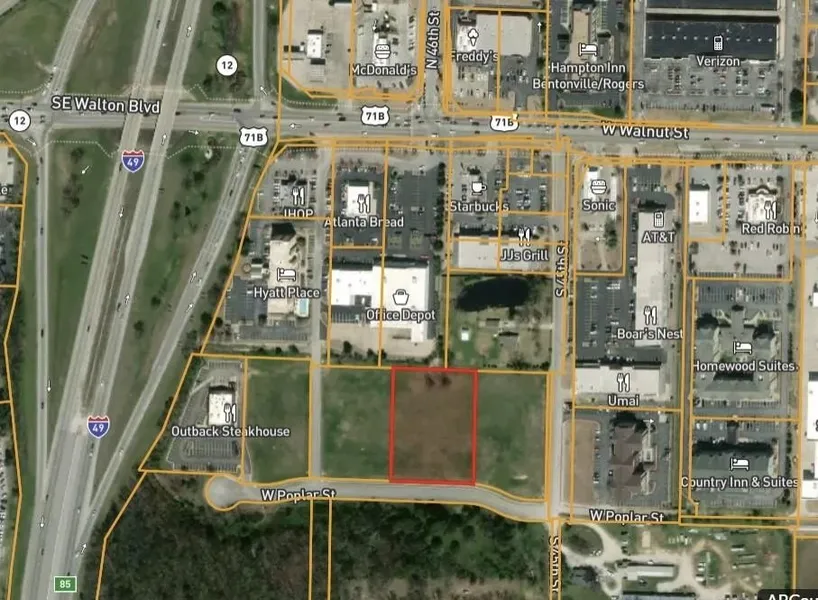 Great location to develop into a business. Viewable from I-49 Northbound at Exit 85. 2024 I-49 traffic count of 109,000. Walnut in Rogers traffic count of 29,000-34,000. I-49 northbound, exit 85 traffic count of 14,000. No Seller Property Disclosure on vacant lot. Owner is related to a licensed real estate agent with Grandview Realty LLC. Taxes are based on the land only and will increase when re-assessed.