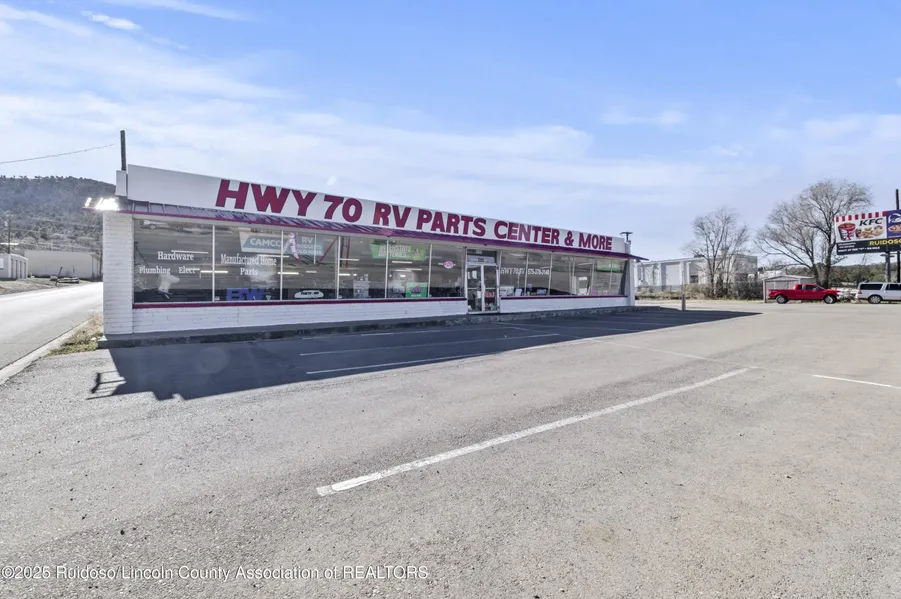 Turnkey opportunity offering an established RV parts and supply business with real estate included, ideally located on a +/-0.55 acre commercial corner-lot along high-traffic US Highway 70 in Ruidoso Downs. The 3,134 SF building supports retail, storage, and service operations and is positioned for excellent exposure with approximately +/-479 feet of Highway 70 frontage. Property provides strong existing cash-flow potential with additional upside through expansion, including room for a service station addition, expanded repair operations, or outdoor RV and equipment sales lot. Ideal for owner-operator or investor seeking a highway-front business serving regional RV, recreational, and tourism demand. Listing includes real estate, business, and inventory. Financials available upon request.