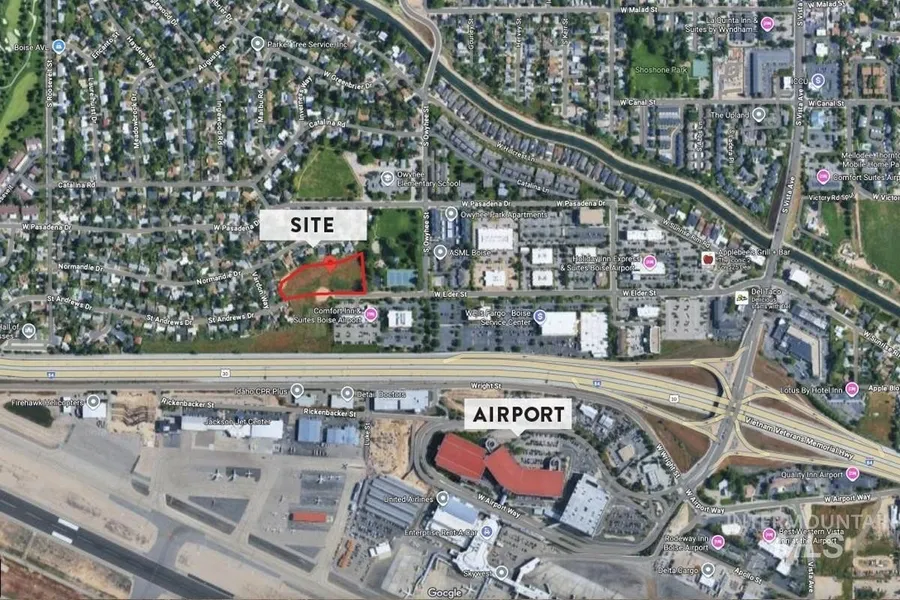 Prime Hotel Development Site – just 1 mile from Boise Airport! This shovel-ready property is fully zoned and approved for hotel construction, with entitlements already in place to save time and money. The site includes an easement for additional parking on the southern parcel (approx. 0.33 acres) and is approved for a hotel up to 3 stories tall. The location is exceptional—high visibility and easy access to I-84 and downtown Boise (10 minutes away) make it ideal for business and leisure travelers. Boise’s tourism, tech sector, and real estate market continue to thrive, fueling strong demand for airport-adjacent accommodations. Limited hotel competition nearby enhances the upside potential. Whether you’re an investor, hospitality group, or developer, this property offers the perfect balance of readiness, strategic location, and market growth.
