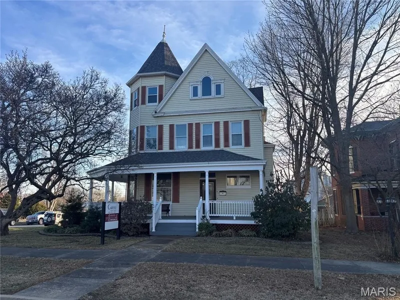 Prime commercial opportunity on a highly visible corner lot just 1 block from the courthouse. This charming Victorian-style property is currently utilized as a title company and offers a functional office layout with classic architectural appeal. The main level features a welcoming reception area, private office, conference room, break room, and a half bath—ideal for daily operations and client meetings. Upstairs, the second floor provides three additional private offices and another half bath, allowing for flexible use or expansion. A third-floor attic offers extra storage, while the full basement adds even more space for records or utilities. This well-located property is perfect for legal, professional, or administrative offices seeking character, convenience, and visibility in a central business district.