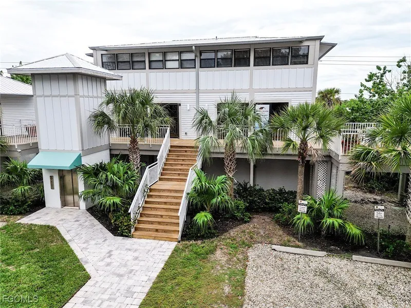 Open for business and available for immediate occupancy! Welcome to 1149 Periwinkle Way, a distinctive and recently refreshed Olde Florida-style business campus that perfectly blends charm, character, and functionality. This one-of-a-kind property features three free-standing office buildings, all connected by a spacious elevated deck surrounded by lush tropical landscaping-creating a unique setting for inspired island business. Building #2 is an elevated two-story structure offering approximately 1,500+/- sq. ft. on the main level and another 1,500+/- sq. ft. on the upper floor, each with its own entrance, two full bathrooms, and the top floor suites also feature a full kitchen. Previously home to a respected real-estate brokerage, property-management firm, and a full service spa- these flexible spaces are ideal for a professional office, creative studio, island inspired retail, or boutique enterprise. The ground level provides over 1,500+/- sq. ft. of climate-controlled storage along with a private two-car garage-a rare convenience on the island. Recently remodeled and meticulously maintained, this inviting campus is among Sanibel's most appealing business centers, offering maximum visibility along Periwinkle Way, the island's main travel artery. With immediate access to the Causeway, the location ensures exceptional convenience for clients and employees alike. Now is the moment to elevate your business and invest in Sanibel's revitalized future-1149 Periwinkle Way is ready to welcome your vision!