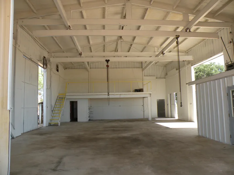 There are several buildings on the 2 full acre property. The main structure is a 60 x 40 metal building, with a front door opening of over 20 ft. It has 14 foot wide sliding doors with 18 foot openings. The structure is heavy I-beams. There are 3 lifts on rollers, the lifts are rated at 3 tons and rollers at 2 tons.