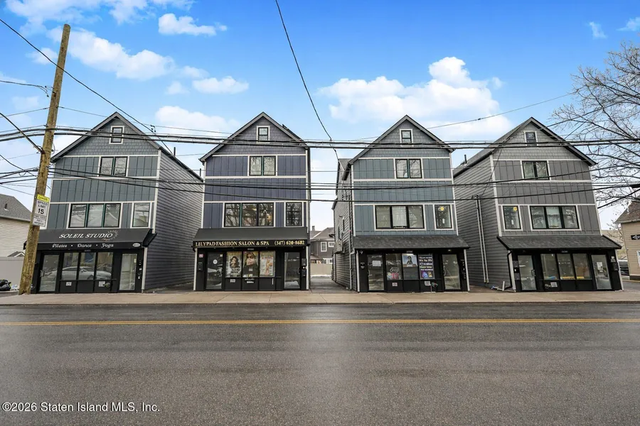 Located on a busy, highly visible block just off the highway, this newly built (2023) mixed-use property is a strong, turnkey investment with modern finishes throughout. The first floor features a beautifully renovated salon storefront with sleek, high-end touches. The space continues into a fully finished salon spa in the basement, with each level offering approximately 960 square feet, creating a seamless and functional setup for the business. The storefront tenant also covers the cost of the solar panels, helping reduce overall operating expenses. Upstairs, you'll find two spacious two-bedroom apartments, each designed with its own style but finished with the same modern quality. Both units are currently rented at 2,300 per month, providing steady, reliable income. This is a newer construction, income-producing property in a prime location with strong visibility and demand. A solid opportunity for any investor looking for a well-built building with excellent rental potential.
