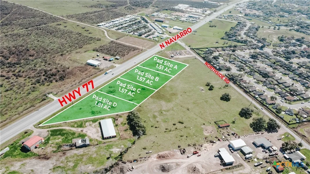 Encompassing 1.81 acres of coveted land where Hwy 77 meets North Navarro, Pad Site 4 commands attention with its prime location and substantial traffic exposure. Boasting a daily traffic count of over 15,400 vehicles, this site presents an exceptional opportunity for commercial ventures seeking maximum visibility and accessibility. With its expansive dimensions and strategic positioning, Pad Site 4 is poised to accommodate a variety of businesses looking to thrive in a dynamic and high-traffic environment.