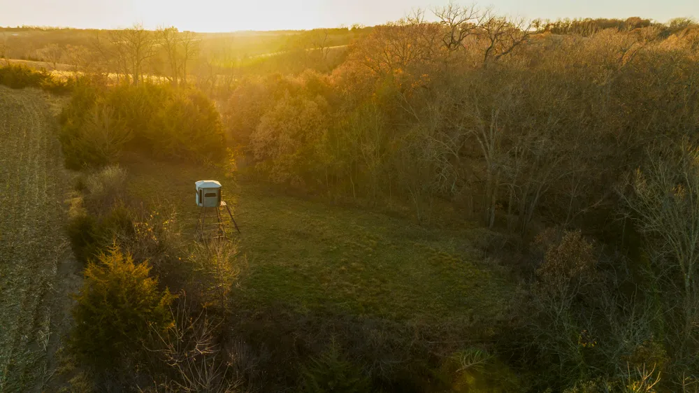 As you work further into the property, the landscape changes to a more wildlife-friendly habitat. The variety of cover consists of cedars, oaks, and other timber. Multiple small food plot locations have been cleared and are planted to clover. A fiberglass Redneck hunting blind stays with the property. Several drainages run through the tract and provide natural corridors for movement that would be ideal for the rut. Cedars and oaks are abundant and provide great cover throughout the entire hunting season. The current owner has harvested multiple bucks off the farm.