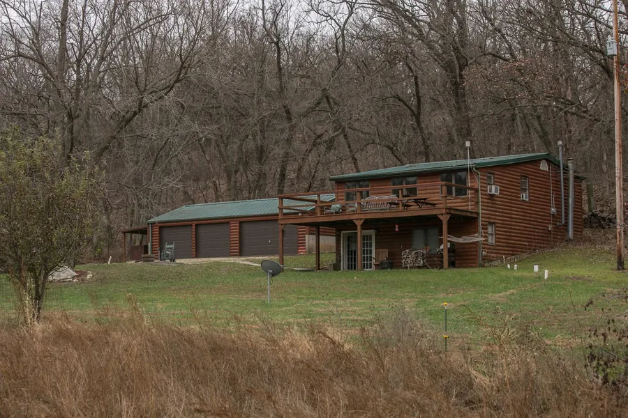 In addition to this incredible recreational hunting farm, is a large 40x80 barn that is insulated, has concrete floors, and is heated.  A well manufactured building to store all your equipment.  The cabin that has been tucked into the middle of the farm is beautiful in itself.  Well taken care of, a overwhelming porch that over looks a 5 acre food plot, all working amenities, power, water, electricity, septic system and satellite. A detached 3 car garage that provides additional shelter for vehicles, trailers, utility vehicles and more. A beautiful cabin, a place to sit out with your family and hunting buddies around the fire, scenic views of the best of Riley County, Kan. and Tuttle Creek Reservoir., outstanding turkey and deer hunting with history to prove it.  The beautiful acreage, incredible hunting, comfortable cabin in the woods and views of the reservoir is rare find!