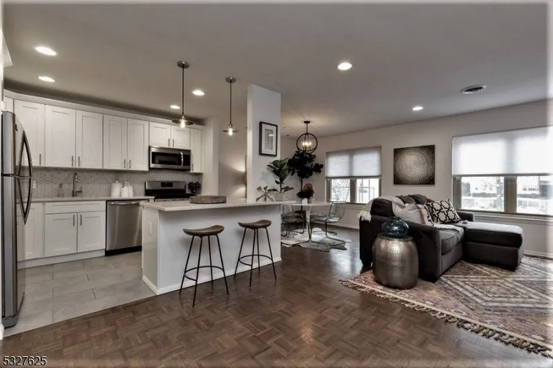 An unbeatable VALUE -hot/ cold WATER + HEAT + GAS +PARKING are all INCLUDED in the rental PRICE. So NO additional surprise bills, just electric. This private CONDO offers Central AC, Huge OPEN layout w/ sunken LR + DR+ Kitchen fabulously remodeled w/QUARTZ counters + center ISLAND w/seating & SS appliances. Master BR w/ REMODELED en-suite BATH, huge double CLOSETS, LR has perfect corner for home OFFICE desk /space. GARAGE avail for a fee. LOCATION, LOCATION ! Very near DOWNTOWN & NYC direct Bus, WHOLE Foods, ART Museum, WELLMONT Theater - LIVE concerts, Montclair film festival/CINEMA. BOUTIQUE stores & Boutique Ethnic, vegan, organic... RESTAURANTS w/ BYOB, yoga & SPA/ beauty centers. DIRECT- NYC train few blocks away.