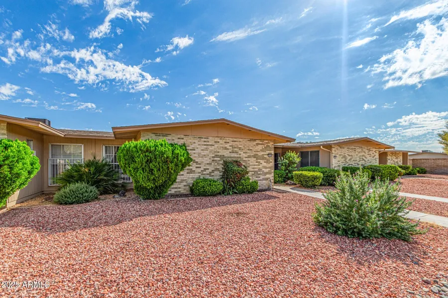 Beautiful single-level home in the fantastic Sun City community! This home features an open floor plan with two bedrooms, two bathrooms, a separate dining area, and a breakfast bar off the island. Beautiful luxury vinyl flooring and tile throughout the home, stylish modern bathrooms, and an incredible amount of storage both in the home and in the garage. Backyard patio with paved areas for dining and relaxing with overhead shading. This home also conveniently offers solar allowing the owner to enjoy lower monthly electric bill payments. And the community itself is magnificent with an abundance of amenities, including a pool, spa, a workout facility, biking trails, walking trails, lakes, a clubhouse, tennis courts, golf, racquetball, and so much more!