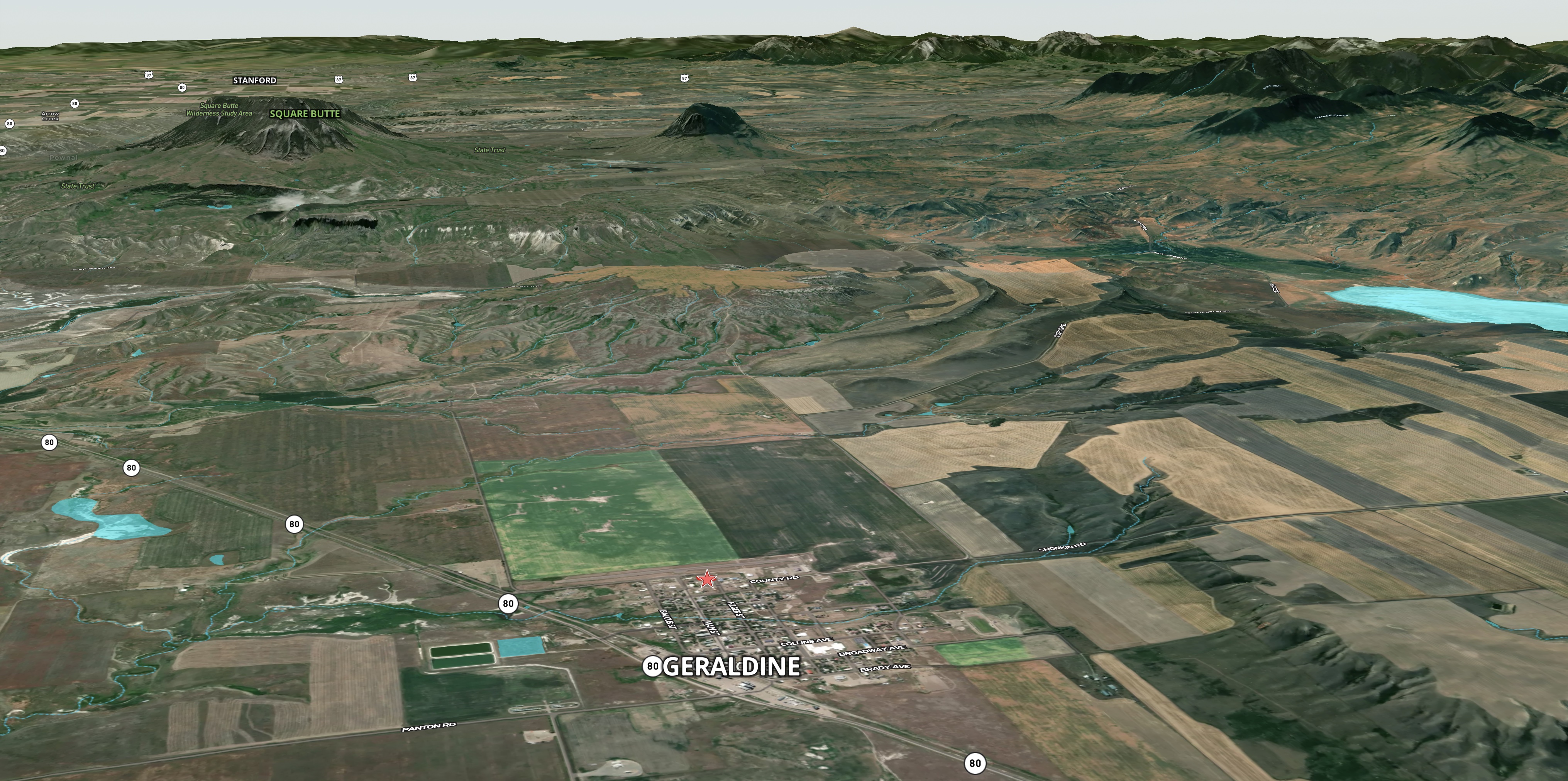 Geraldine, Montana is surrounded by some of the nation's richest grain-producing land. In the heart of the Golden Triangle, this area has a fruitful history of agriculture with farmers and ranchers alike. Nearby sits Square Butte which offers big game hunting and beautiful scenery. Kingsbury Lake is four miles from town and part of a waterfowl protection area, making bird watching very rewarding. The area around Geraldine, however, offers great upland bird hunting and other wild game hunting. The close-knit community makes this small town a charming place to set up roots.