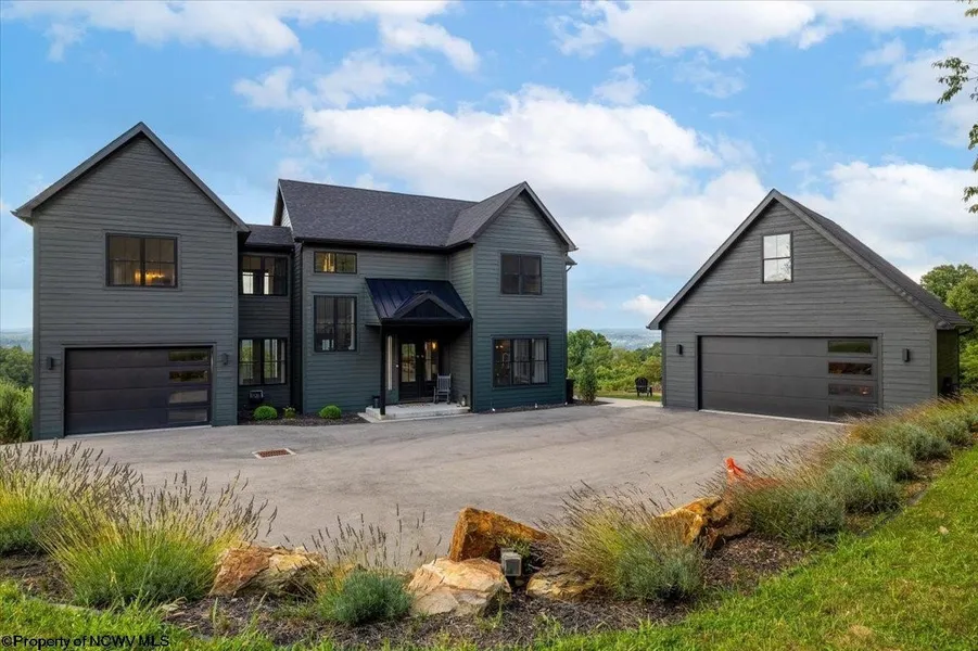Breathtaking views of Cheat Lake await in this stunning 4 bedroom, 3.5 bath home. Featuring a spacious wrap-around deck, multiple outdoor entertaining areas, and oversized windows throughout, this home is designed to take advantage of its panoramic setting. Inside, enjoy the two-story great room with gas fireplace. The gourmet kitchen boasts a full suite of Z-Line appliances, oversized island, honed granite countertops, custom cabinetry, and a hidden spacious pantry. The primary suite offers year-round lake views from its private balcony, a spa bath with jetted soaking tub, and jetted showers, as well as a spacious closet. Additional highlights include a dramatic iron staircase, designer lighting, fenced yard, detached garage, and a 12-ft tall daylight basement with endless potential. Call today to tour this beautiful listing!