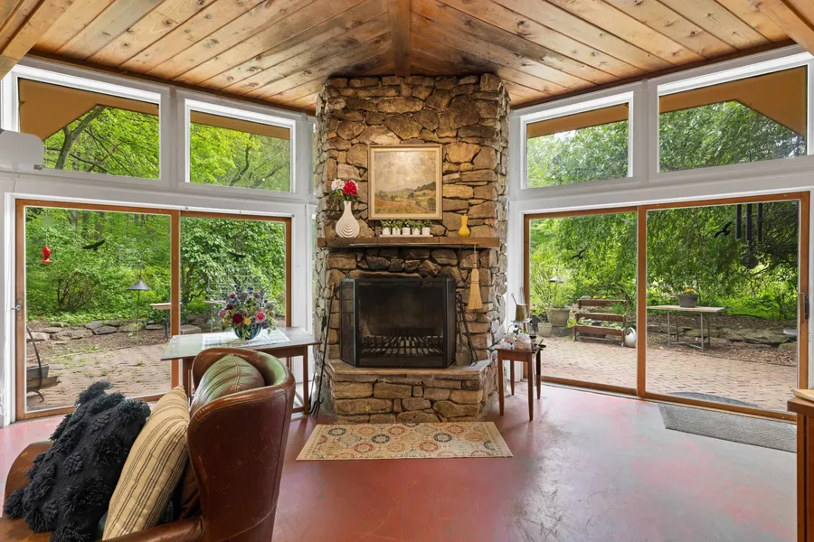 Nestled on nearly 50 acres of serene natural beauty, this stunning Usonian-style home—designed by a Lexington architect and inspired by the timeless work of Frank Lloyd Wright—offers a rare blend of architectural artistry and tranquil living. Thoughtfully situated for privacy yet conveniently located on Route 11 with easy access to the interstate, the property offers a smooth commute to Richmond or Northern Virginia. The home is surrounded by rich wooded acreage with meandering walking trails, vibrant wildlife, and an impressive array of native and rare tree species. Among them are remarkable dawn redwoods—once thought extinct until their rediscovery in 1941 in China—which were lovingly propagated from seed by the seller. The land also features open pasture with exceptional soil quality, ideal for gardening or small-scale farming. The 2 bed with bonus room; 2 bath home boasts radiant floor heating and a seamless connection to the outdoors, reflecting Wright’s vision of harmony between structure and nature. Daily visits from diverse bird species and the peaceful sounds of the forest make this property a true retreat. A once-in-a-lifetime opportunity to own a private sanctuary that’s both architecturally and naturally extraordinary.
