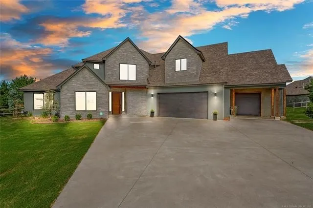 Seller Highly Motivated! Welcome to this modern gem in the desirable CHARLESTON COUNTRY ESTATES! This spacious 4-BEDROOM, 3.5-BATHROOM home sits on over HALF AN ACRE and offers a thoughtful layout with ALL BEDROOMS ON THE MAIN FLOOR. The grand living area features SOARING CEILINGS and a stylish GAS FIREPLACE, flowing into a GOURMET KITCHEN complete with STAINLESS STEEL APPLIANCES, GAS COOKTOP, DOUBLE OVENS, a SPACIOUS ISLAND, and WALK-IN PANTRY. The PRIMARY SUITE boasts a luxurious SOAKING TUB, DOUBLE SINKS, and a SEPARATE WALK-IN SHOWER. Upstairs, you'll find a generous GAME ROOM, ADDITIONAL LIVING AREA, and a FLEX ROOM perfect for a home office or gym. Enjoy entertaining on the COVERED PATIO overlooking the FULLY FENCED BACKYARD. Built in 2021, this home also includes a 3-CAR GARAGE and is outfitted with a CRESTRON SMART HOME SYSTEM for seamless control of LIGHTING, AUDIO, CLIMATE, and SECURITY, Large FLOORED ATTIC, HERS RATED HOME with FULL SPRAY FOAM INSULATION, 2x6 exterior walls, and more! Sprinkler system, fully fenced yard, plumbed for gas on the patio and BUILT-IN SPEAKERS in most rooms! Located in the award-winning BROKEN ARROW SCHOOL DISTRICT!