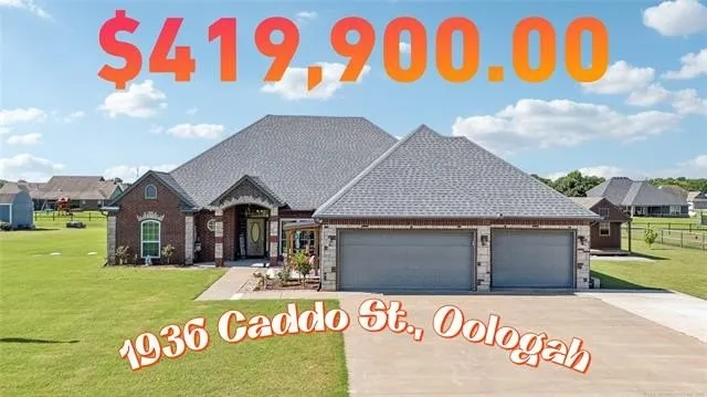 Full-brick 4-bedroom, 3-bath home located in Pecan Valley in Oologah. Interior features include granite countertops, under-cabinet lighting, crown molding, and a split floor plan. Recent updates include Carrier zoned HVAC, thermal windows, zoned tankless water heaters, and an in-ground storm shelter. The primary suite offers double sinks, a jetted tub, separate shower, and a large walk-in closet. Home includes formal dining, living room, and den for multiple use options. Exterior features include an RV/boat pad, storage building with electric, and a large backyard in an established neighborhood. Home has been well maintained and is ready for its next owner.