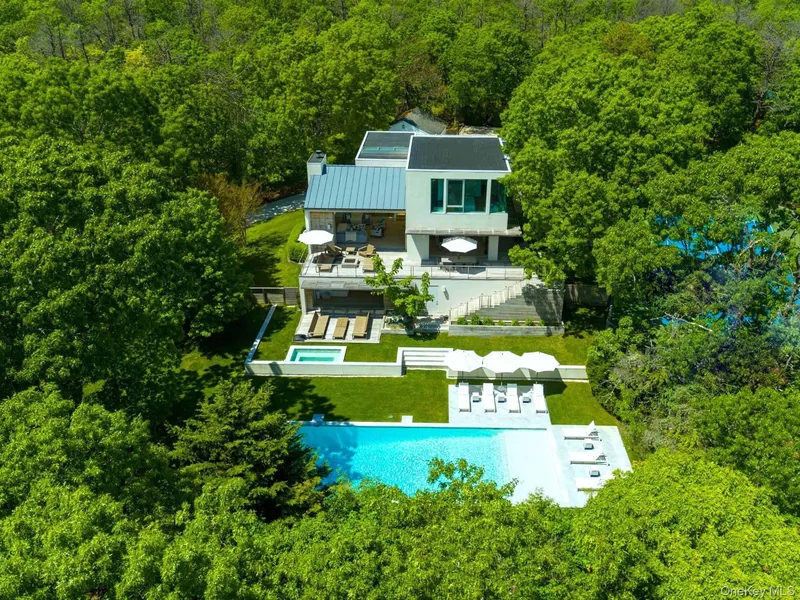 In a class by itself, New to Market, exquisite Malibu Style Modern Contemporary perfectly suited on a meticulously well-kept shy 2-acre parcel with Pool and Tennis offering the Ultimate in Hamptons Resort Style Summer living. Magnificently positioned and perched high above is where you'll find this exceptional Hamptons 4 level Modern bathing in full privacy and greenery with its commanding views of the full-sized North/South Tennis and its oversized 52x18 heated Saltwater Gunite Pool. Here summer never ends with its pool and jacuzzi wrapped in white marble and sprawling green lawns which take center stage all summer long. Boasting 6725 sqft of luxurious open and modern resort style living spaces on 4 levels which feature soaring ceiling heights, an abundance of natural light and its expansive sliding glass doors which magically blend the indoor and outdoor spaces effortlessly creating t...
