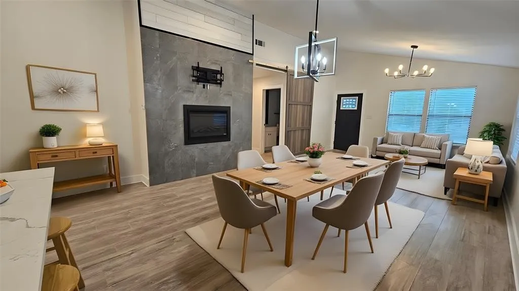 Inside, you’ll love the slanted vaulted ceilings and open-concept layout connecting the living, dining, and kitchen areas. The smart design makes the space feel larger and perfect for gatherings or quiet evenings at home.
