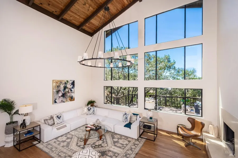 Architecturally significant and custom-built, this 4BD/3.5BA Napa retreat blends design, privacy, and sustainability on a .43-acre south-facing parcel with sweeping views of Napa Valley, Mt. Tamalpais, and San Pablo Bay. Flooded with natural light, the home features renovated oak floors, smooth coat walls, fresh paint, and designer details throughout. The chef's kitchen offers stone counters, custom cabinets, gas range, stainless appliances, and windows that overlook lush grounds. The main-level primary suite includes a spa-style bath, soaking tub, walk-in shower, and deck access. Upstairs: 2 bedrooms + reading loft. Enjoy mature landscaping, private outdoor zones, a freeform pool with waterfalls, and a separate guest unit. Smart features include owned solar, Tesla charger & battery, and oversized 2-car garage with fireplace + guest parking. Tucked in nature's arms, just minutes to Downt...
