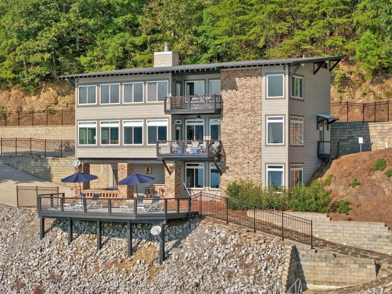 Smith Lake (Cullman Side) An absolute wow property with some of the best views you can find! Sitting on a double lot with amazing sunsets! You will not find another home like this one. Modern, elegant, and timeless! The main living area has gorgeous windows overlooking a wide expanse. On the upper level, you have a secondary master suite and separate entrance. Two guest rooms as well.