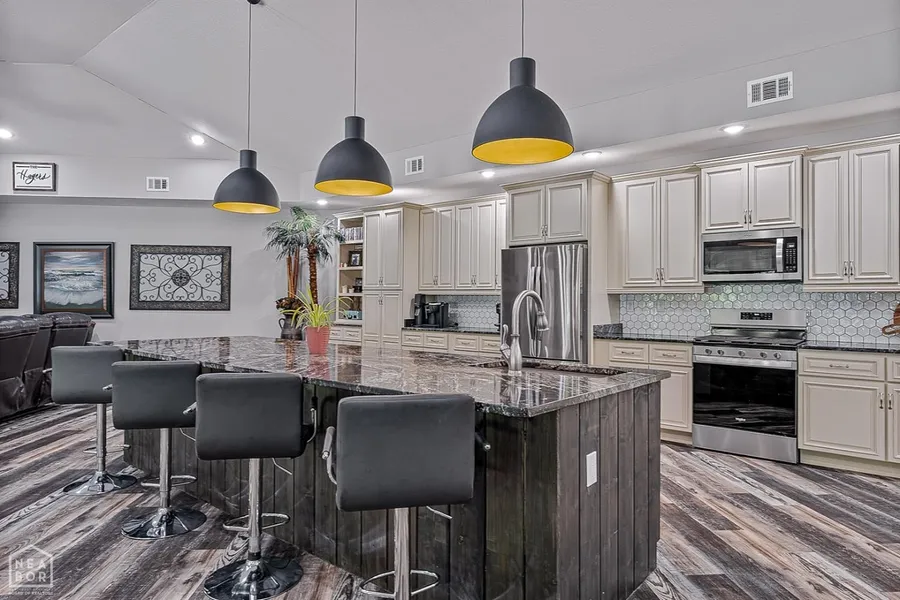 Live Off the Grid Without Giving Up Granite Countertops. Introducing a once-in-a-lifetime property for those who want peace, privacy, and preparedness without sacrificing modern comfort. Nestled in the rolling hills of Harrisburg, 8203 Oak Creek is the perfect fusion of luxury living and self-reliant survival. This homestead-style retreat is built for everything from weekend retreats to world-altering events. Whether you're bracing for zombies, grid failure, or just in-laws staying too long, this home is move-in ready and apocalypse-friendly. Custom-built, and completed in 2023, nestled on 9 acres along Crowley's Ridge with a pond. Thoughtfully designed with a contemporary aesthetic, this home showcases open spaces, soaring ceilings, and an abundance of natural light perfectly complemented by serene, wooded surroundings and abundant wildlife. Step inside to find 13-foot ceilings, waterproof luxury vinyl plank flooring, and beautiful granite countertops. The kitchen is as functional as it is stylish, featuring built-in accents, elegant drop-down lighting, and an abundance of cabinetry to meet all your storage and entertaining needs. A west-facing front door fills the home with warm afternoon light, while a full-height concrete rear wall offers enhanced storm protection (a smart and stylish safeguard for Arkansas weather). Enjoy cozy evenings by the striking living room fireplace, adorned with soldier-pattern brickwork and a bold oversized mantle. The gourmet kitchen, spa-like primary bath with a deep soaker tub, and finished attic space above the garage offer comfort and versatility at every turn. Outdoor living shines here with a screened-in back porch ideal for relaxing or entertaining. Additional features include a durable metal roof, two natural gas tankless water heaters, two separate garages, and a layout built for both style and resilience. This one-of-a-kind property offers a rare combination of modern luxury and rustic tranquility. Don't miss your chance to make it yours.