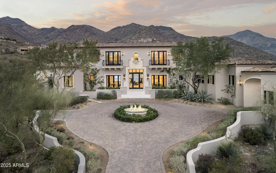 This timeless Modern Mediterranean estate is located on a quiet cul-de-sac in the heart of Silverleaf's prestigious Upper Canyon. HOME IS BEING OFFERED FULLY FURNISHED. Captivating views are found in every room, capitalizing on its 2250' elevation and unique mountain setting. This recently refreshed grand residence is the ideal size encompassing 8,889 square feet of indoor livable space in addition to sprawling outdoor living areas. The superb interior styling, orchestrated by Donna Vallone of Vallone Design, creates the perfect blend of casual luxury with a sophisticated modern edge. The house was designed by architect Luis Antonio Bonilla owner of the Antigua Home Designs. The main level living offers a large Primary retreat with spa-like bathroom, a private guest suite, luxurious office, spacious living room with bar area, grand soaring ceilings and pocket doors seamlessly blending the indoor and outdoor. The second-floor features two oversized guest suites. This estate home was built to the highest standard of quality and detail by Argue Custom Homes. Quality finishes throughout include the gourmet kitchen with Wolf/Subzero appliances, wide plank wood flooring, crown moldings and custom ceiling detail, extensive home automation system, back lit wine wall and private Office. Outdoor living spaces include a large covered rear patio in addition to two separate ramadas, a BBQ center, heated pool/spa and extensive turf. The immaculate and spacious 4 car garage including a custom show garage is yet another highlight. This home is a rare find in the neighborhood due to its combination of size, styling and views.