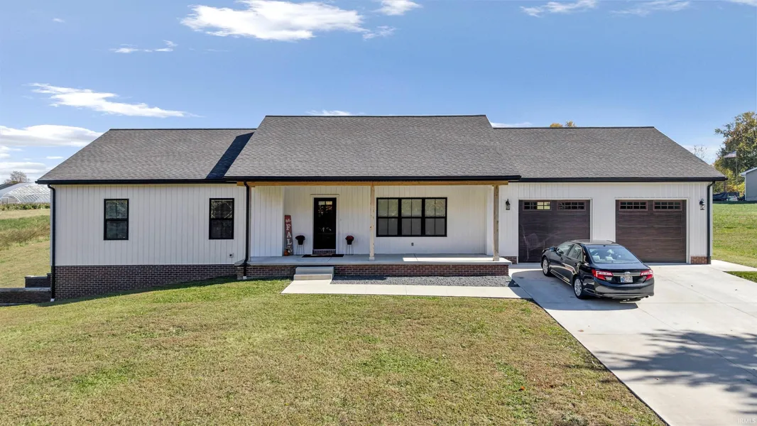 Just in time for the holidays! This beautiful, luxury Owensville home offers over 3,000 sq ft of impeccably finished living space with high ceilings and a bright, open modern layout. The main level features a stunning kitchen with quartz countertops, stainless steel appliances, an elevated breakfast bar, and a spacious walk-in pantry. Three generous bedrooms all include walk-in closets, including a spa-like owner’s suite with a private bath and an oversized walk-in closet. The fully finished walkout basement is a true extension of luxury living, offering an impressive second full living space. It features a large, open family room filled with natural light and direct access to the lower patio and country views, making it perfect for entertaining, movie nights, or cozy gatherings. The basement also includes a 4th bedroom, a beautifully finished full bath, and a spacious bonus room ideal for an office, exercise space, or potential 5th bedroom. A massive storage room provides outstanding functionality for décor, hobbies, workout equipment, or long-term storage needs. Enjoy two exceptional outdoor living spaces: a covered patio off the kitchen and dining area, perfect for hanging lights and hosting gatherings, plus a second patio off the walkout basement overlooking peaceful country farmland—ideal for quiet mornings or relaxing sunsets. An oversized 2.5-car attached garage provides excellent parking and storage. Beautifully maintained and thoughtfully designed, this home offers luxury, space, and stunning indoor/outdoor living in a serene small-town setting.