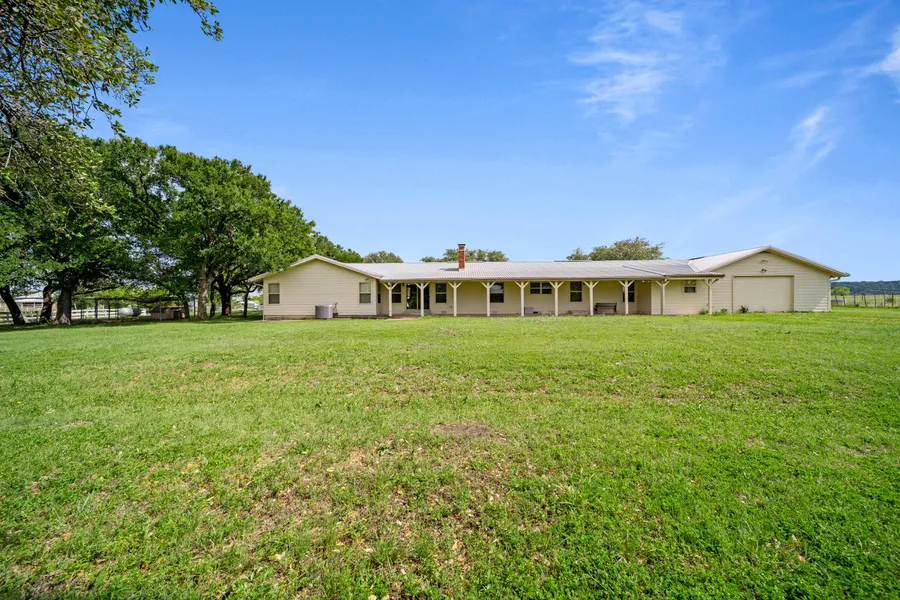 Sellers are offering this 380+- of the 909 acres optional partials, subdivided as advertised. As you drive down the mile long driveway you'll notice the lane is dotted with 20 Pecan trees, all irrigated from one of the four Trinity Water wells. Cross the cattle guard to the one story 3,400 sqft. main ranch house. There are 4 bedrooms, an office and 3 full baths. The a double sided fireplace brings warmth and comfort to both the living room and dining area off the kitchen. The home has Mexican tile and carpet. The kitchen has been totally renovated with new modern appliances. The master bedroom and bath are split from the rest of the house. The master bath is new fresh and large, with an walk-i shower, double vanities, sitting area, private toilet, large closets, cabinets and shelving. The other 3 bedrooms share a full bath. There is free standing refrigerated water founta...