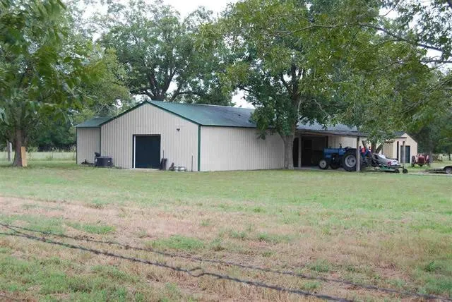 Cool place! Country setting just outside of town is this 23 acre tract with huge building with 1 bedroom/1 bath living quarters inside. Finished in pine with living/dining/kitchen combo, jetted tub and separate shower in bathroom. Remainder of building is perfect for storing ATVs, etc.