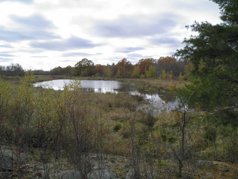 New York wooded property with ponds and trout stream for sale: Remnants of an old barn, farmhouse, planting devices and fence lines tell a story of agriculture playing a role in this forested property's past. Once farming ceased, and fields and pastures were destined to return to forest, Norway spruce and white pine trees were planted in areas between the rock outcrops where hardwoods were not yet established. The native hardwood tree species include; sugar & red maple, red & white oak, basswood, beech, butternut, ash, hickory, hophornbeam, birch, and cherry. Native softwoods include white pine, hemlock, red spruce and balsam fir. Most of the timber is currently in the pole to small sawtimber size class, an opportune size for improvement thinning. The most northern portion of the parcel extends into marsh land adjacent to Barter Creek. Three beaver ponds bisect the parcel south of th...