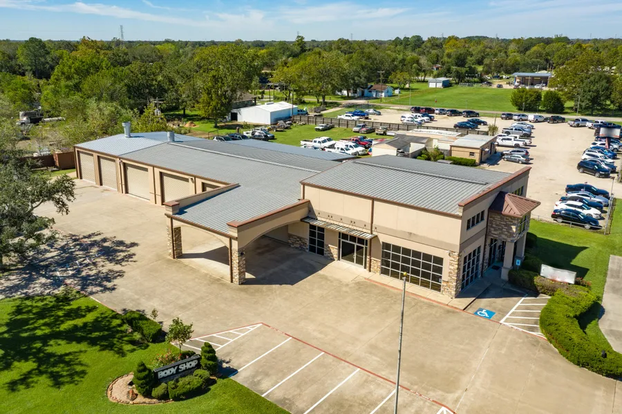 ~9200 Sqft Body Shop Building on 1.5-Acre Corner Lot at Hwy 6 & CR 149 lighted intersection in Alvin. The body shop building is approximately 49.5'x138' and has 5 14-ft wide roll-up doors & 3 18-ft roll-up doors. Two sets of doors are across from each other leading out to the 25' x 64' lean to cover and the gated/fenced storage lot on the west side of the building. There is a small storage building with 2 roll-ups on the west side of the building as well. The shop has 2 paint booths, 1 frame machine bay, 37x49 glass-walled showroom, stained concrete floors, 2 restrooms, a coffee bar, and an ~1100 sqft finished, lighted storage room above the 2 private offices. There are two drives off CR 149 and one drive off Highway 6. The East side of the building has a 29'x29' attached carport & concrete paved parking with 10 marked parking spaces & 1 handicapped space in front. There is also an 80'x2...