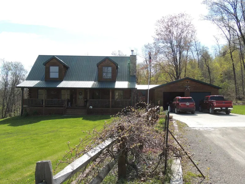If you have been looking for a secluded retreat in the woods, or a beautiful place to raise a family then this may be for you. The gorgeous Red Cedar log home sits in the middle of over 63 acres of nature rich property. The home has 2320 square feet of living space plus an additional 880 square feet in the full walk out basement that could be finished. The home is loaded with customizations. Like the beautiful hickory kitchen and the carved iron balusters leading up the stairs and across the loft. The owners suite has a large soaking tub and a huge walk in closet. Attached to the home is a nice two car garage with plenty of room for storage. There is also a 2424 detached garage and a 3040 pole building giving you plenty of room to store your tractors, quads, and equipment. Sit out on the front or rear covered porches and enjoy the wildlife feeding in your yard.
