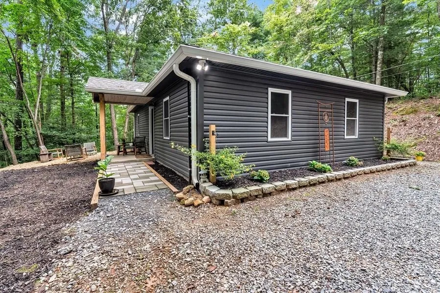 Tucked peacefully into the North Georgia woods yet just 10 minutes from downtown Ellijay, this beautifully maintained 2-bedroom, 1-bath home offers the perfect blend of privacy and convenience. Set back from the road and surrounded by nature, the property provides a quiet, relaxing setting ideal for full-time living, a weekend getaway, or investment opportunity. Thoughtful and extensive upgrades make this home truly move-in ready. Major improvements include a new HVAC system, roof, gutters, siding, energy-efficient windows, blown attic insulation, propane tank and heater, whole-house water filtration system, Generac generator, updated well water tank and wiring, and a Blink security system. The interior has been thoughtfully refreshed with painted kitchen cabinets and interior walls, new LG appliances (stove, refrigerator, washer and dryer), and updated lighting fixtures throughout. Outdoor living shines with a dedicated fire pit area, outdoor dining space, freshly painted shed, new front walkway, upgraded exterior doors, and improved driveway access with a culvert and fencing. This North Georgia gem offers wooded privacy, modern upgrades, and close-to-town convenience, no HOA! — a rare and inviting opportunity in Ellijay.