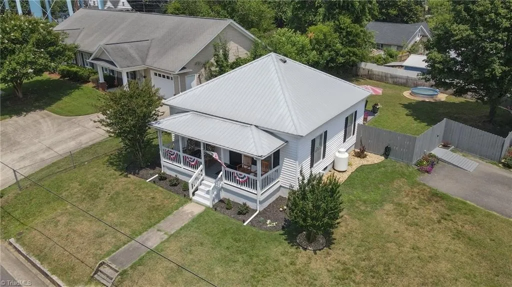 Cute as a button in Mayberry! Make this your greatest investment or add to existing portfolio! This 1-2 bed, 1.5 bath cottage has several updates and has been well maintained. It's moved in ready. Sellers have added a full privacy fence, floating deck, steps & railings as well as a cozy water feature/pool(stock tank) to enjoy. Every room except the half bath has been painted in the last 2 years. Full bath was completely redone 12/24. New floors in bedroom/full bath, dining room & living room. All new smoke/carbon monoxide detectors(6/23). New stove (8/23) River rocks added for landscaping. Front porch railings & hand rails replaced & painted. Much more to see. Sit and rock on your front porch and wave at the squad car tours living across from Andy Griffith Homeplace. Walking distance to downtown to enjoy the many sights and shopping Mt Airy has to offer. Call today before this one is gone.