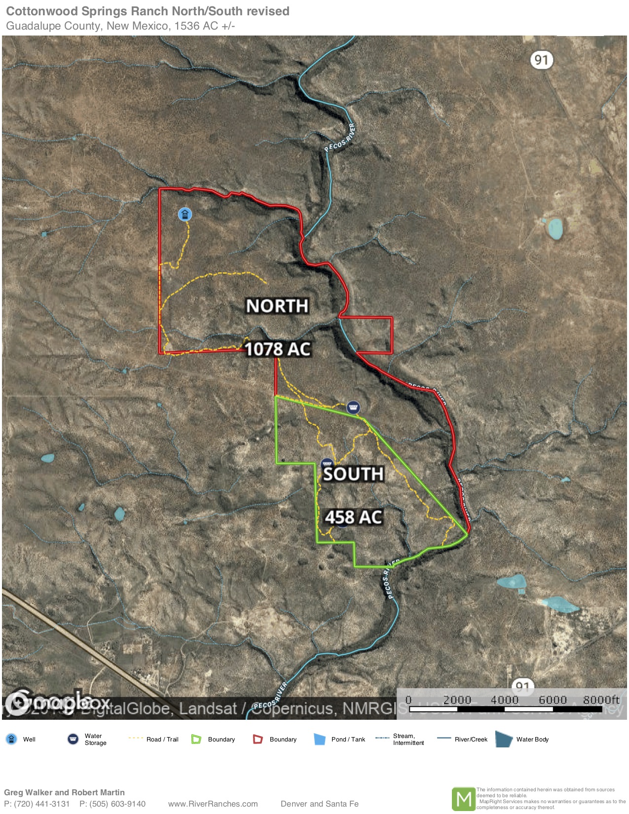 Cottonwood Springs South is a beautiful riverfront ranch containing 453 acres with over 1/3 mile of exceptional spring-fed Pecos River. There is a rare 4WD road down into the 250 deep canyon. In the bottom, the river forms nice pools around giant boulders and is lined with mature cottonwoods. On top there are a variety of fascinating sink holes as well as some stone ruins and runs of old stacked stone fence. For centuries, Native Americans chipped arrowheads on the protected ledges overlooking the river making for great arrowhead hunting. This is beautiful canyon-edge grass-country interspersed w/ Mesquite, Pinon, Juniper, Oak, and Cottonwood accented with unique rock formations. Fabulous bass fishing and turkey hunting with mule deer, quail, and waterfowl. Wildlife also benefits from 3 stock ponds. The Pecos River tailwater below Santa Rosa Lake is an excellent warm water fishery. Easy ...
