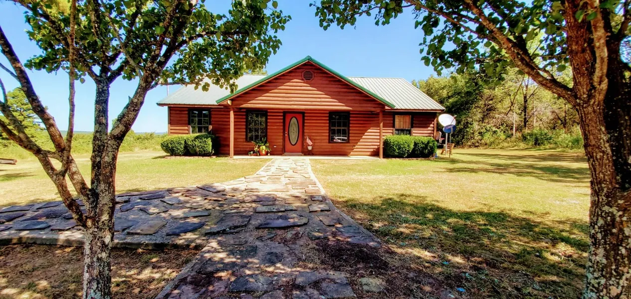 A nice lane leads you home to this beautiful property that boasts a mountain view from the home and yard. Situated on 11.5 acres, this 1255 square foot home is on a hill that overlooks the picturesque valley and mountains in the distance. Upon entering the home you are welcomed into the spacious living room with a vaulted ceiling. The open living room and kitchen have a nice flow and provides lots of room for the family. The hallway bath is centrally located between the living area and the 3 nicely sized bedrooms. The master bedroom has its own bathroom with separate corner tub and shower. The laundry room is located at the end of the hall. Central Heat and Air provides a nice temperature throughout the home. In addition to the front porch located at the entry of the home, the back porch can be accessed from the dining area and kitchen. There is a 30x40 metal shop that has concrete floors and is insulated. It has 3 roll up doors as well as a walk-in door. Property is mostly wooded and has trails and lots of wild game are seen daily. The pond provides good fishing as well as water for wild game. This beautiful property is in a remote area, and still within a 15 minute drive of the nearest town of Talihina.