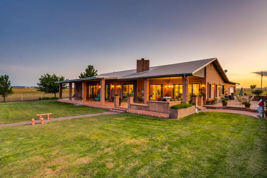 your horses and cattle on your 20 acres of land! The home is built with Slump Block for very low