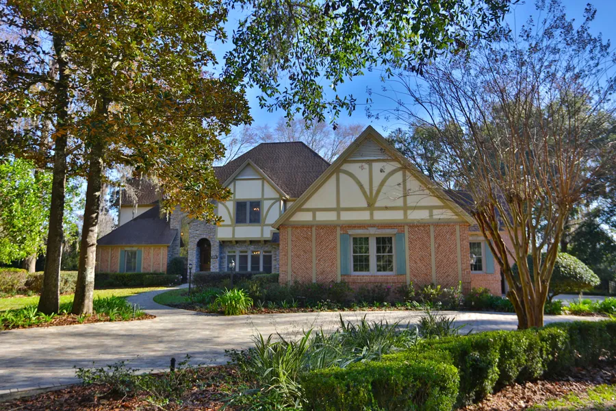 Incomparable stone & brick construction previously built for builders private residence overlooking the 15th fairway in The Country Club of Ocala. Incredible mill work and construction details throughout: beautiful crown moldings, wood beams, coffered ceilings, solid wood interior doors, coffered ceilings, and wood & travertine flooring throughout. First floor features formal dining, formal living with fireplace stunning great room with built in bookcases on each side of fireplace. Chefs kitchen with top-of-the-line appliances, custom cabinetry, granite countertops, spacious breakfast area, oversized island and large walk-in-pantry. Breakfast area with French doors leading to enclosed sitting and entertaining area. Laundry room features sink and space for second refrigerator. Owners suite located on first floor with crown molding, hardwood floors adjoining owners bath with Travertine fl...