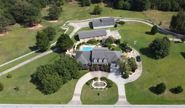 7 BR / 3.5 BA home with three car garage and pool on 11.92 +/- acres. Entire backyard surrounded by 10 concrete wall with elaborate iron gates on either side. Detached large garage and shop area directly behind pool. Awesome pool house with kitchen, sitting area and custom fireplace and multi-level smoker built into wall. Additional building perfect for barn or stables with small apartment at one end.