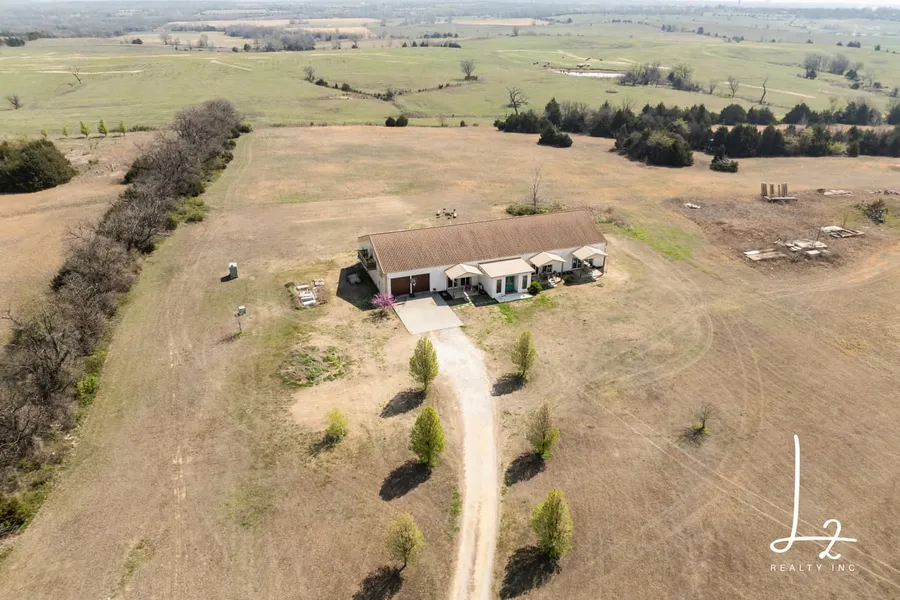 Welcome home to this countryside retreat. Spanning approximately 75 acres of rolling country side, with views in all directions, and overlooking a tranquil 2+/- acre spring-fed pond, this estate is conveniently situated between Independence and Coffeyville. The blacktop road frontage provides easy access to other nearby towns and cities, offering the perfect balance of modern convenience and accessibility, with seclusion and country living.