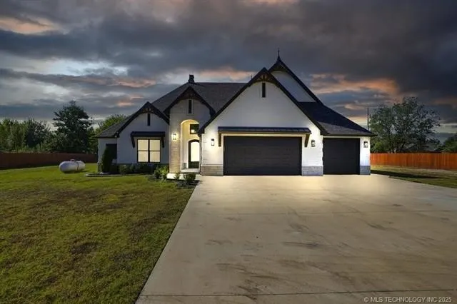 Welcome to this stunning 2022 customer-built home on 2.5 acres +/- gated, fully fenced acres in Broken Arrow. This 4-bedroom, 3.5-bath home features a 3-car garage with epoxy floors, high ceilings, and luxury finishes throughout. Enjoy a spacious kitchen with a large island, quartz countertops, gas cooktop, and oversized pantry.