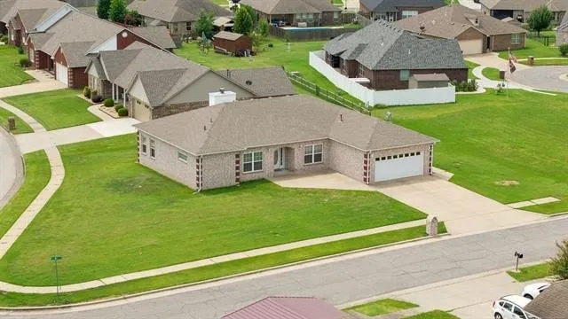 Lovely 4 bed roomy home on nice corner lot with ample parking in a super great neighborhood. Features include a large great room with gas fireplace and built-in entertainment center that has abundant cabinets ideal to display your treasures and collectibles. The large primary suite includes a large walk-in closet and private bathroom with double sinks, separate, shower and large soaking tub. Other features include sunny kitchen with lots of cabinets located just across the formal dining, split bedrooms, and inside saferoom in the garage. Updates include roof & HVAC less than 3 yrs old, fresh paint, new carpet, window & door screens, refrigerator, washer & dryer, microwave, some ceiling fans and more. This home has had all the work done for you and is in move in ready condition. See to appreciate all it has to offer!