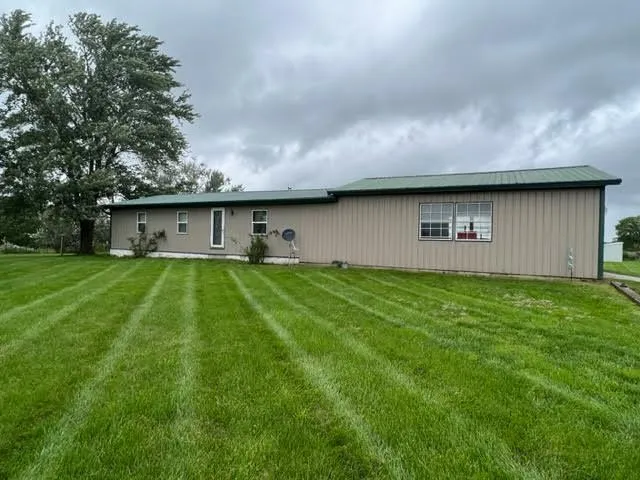 3 Bedroom, 3 Bath, 2 Car Attached Garage, Rustic Manufactured Home with Walk-Out Basement sitting on 5 Acres M/L with a great highway location has hit the market! Be prepared to fall in love with the farm style kitchen with tons of beautiful Amish custom-built cabinetry, nice sized island, stainless steel appliances, rustic beams and vaulted ceiling, and comes with pretty new plank flooring. This home boasts an open living room, kitchen, and dining room floor plan. The covered porch/deck has a nice view of the pond. The pond is stocked with Catfish, Bass, and Crappie. There is a lean to shed and a chicken coop. This home is easy to heat with propane and a wood stove and has central air. Acreages are in demand and hard to find, this is a prime piece of property. So dont delay and schedule to see this one with great country living.