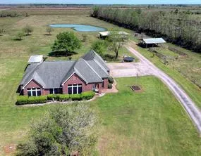 Custom built country home on 10 acres, has something for the entire family! Enter this fenced /cross fenced property thru custom gates. Drive up your own blacktop drive to an all brick ,energy efficient 3/2.5/2 with huge concrete driveway for all your guests. Has soaring ceilings, lots of windows and large bonus room with 1/2 bath. Covered patio, in ground pool, cabana, 30x40 shop with electric/water, 2 covered sides and carport for parking all your equipment. Pole barn, corral and stocked pond. Amazing sunrises and sunsets. County water and 4 well. Ag exempt. Close to I-10 between Houston and Beaumont for an easy commute. Near bay/boat ramps, wildlife refuge, parks, golfing, local shopping, good small town schools. House has never flooded. The home can be purchased with a total of 20 acres at an additional cost.