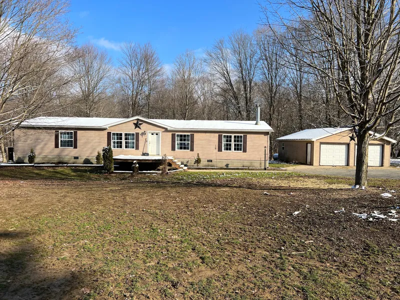 If you are looking for a country home with nice acreage, give this one a look! This 3-bedroom manufactured home sits on a nice wooded property and is a convenient commute from many of the surrounding cities. The home sits on a block foundation and features a large master suite. The master features his/hers closets as well as a large bathroom. The bath offers both a jacuzzi tub, shower and double sinks. There are two other nice-sized bedrooms and an additional full bathroom. A nice bonus room could be an extra bedroom or office space, depending on your needs. The living area has an open concept and features a cozy wood fireplace. The kitchen has a nice island and plenty of storage and comes with the existing appliances. If you prefer new cabinets, there are replacements currently stored in the garage that have just not been installed yet. Nice decks off both the front and rear of the home offer the perfect place to relax. The home is very solid but will require some minor cosmetic repairs. Outside you will find a nice two-car garage with a cement floor and wood stove. A paved driveway and nice cement walkways are an added bonus. There is a small barn that could house your animals with electricity and water! The side yard has a small pasture and a portion of the woods was started to be cleared to expand the size of the pastures but not completed yet. The acreage is predominately wooded and in a great area known for its wildlife. There is a small spring that crosses the property as well. The location is near Woodcock Dam and Near State Highway 86 making the commute toward Meadville and Edinboro a breeze. If this sounds like the home you have been waiting for, reach out to the listing agent with any questions or to schedule your private tour!