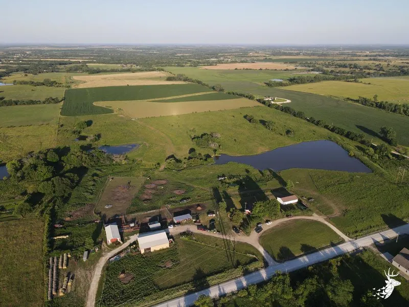 Here is a unique, custom home sitting on 78.5 m/l acres. Excellent country setting but not too far from town. The home is ready for your taste of updates and TLC! Perfect country property with room for big gardens, orchards and livestock. Mature trees in the front yard offer great shade to knock down that afternoon heat. Beautiful views from the back deck and patio off of the walk out basement overlooking a large 3 m/l acre pond. The pond is fully stocked with bass, crappie and channel cat and sits in a waterfowl hotspot. A detached 4535 shop has enough room for parking, storage and workspace! Nearly 40 m/l acres on the east half of the property consists of lush alfalfa and row crop. Tack barn, hay barn, implement shed and more! This is an excellent property to summer and winter your cattle and horses.