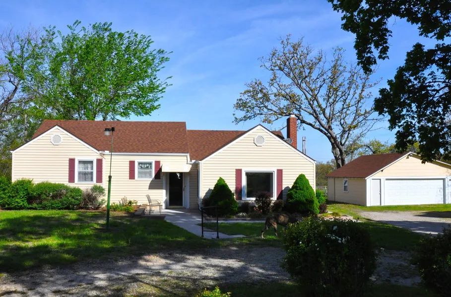Sitting on Blacktop just outside of town is this well-manicured country home on 20 acres. The 1700 sq ft home offers 3 bed and 2 bath with open/eat-in kitchen. A separate utility/laundry and formal living room. There is a detached 3 car garage with electric overhead doors and concrete floor. The home sits well off the pavement tucked below the hill. Fenced and cross-fenced to run livestock. The additional outbuildings are all still in very useable condition and kept up. Out the back door is a large chicken coop converted into workshop/man cave. Full central heat air throughout the home as well as an insert wood burning fireplace in the living room. The acreage is immaculate pasture scattered with oaks and pecans around a rock ledge pond. Great for livestock or simply to walk down and wet a line with the kids. The home is on Rural water but there is a well on the property that can be used for livestock watering and yard work. Fully fenced and ready for you to call it home!