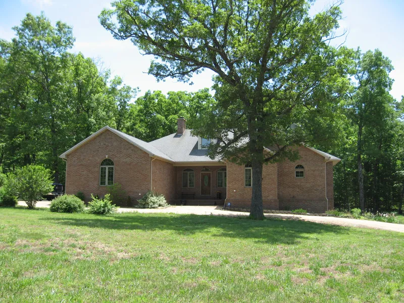 Custom Built Ranch Home With Full Walkout Basement On 53.72 Acres m/l About 20 Minutes South of Rolla, MO. It is centrally located from Rolla, Salem and Ft Leonard Wood, about 20 minutes each way and 10 minutes north of Licking. The 3 BR, 3 BA home contains about 2460 sq ft on the main level with a full walkout basement that is partially finished. Amenities include vaulted, trey or 9 ft ceilings throughout home, brick and Hardie-Board exterior, master bedroom suite, divided bedroom plan, hardwood floors, ceramic tile, large sunroom, custom oak cabinetry, large rooms, forced air wood fireplace, central HVAC with heat pump, low utility costs, 3 car garage (2 on main and 1 lower), covered deck/patio off main floor, a 30x48 painted metal shop/garage with concrete floors, electric and water and much of the home has been newly painted inside. The home even has a security system.