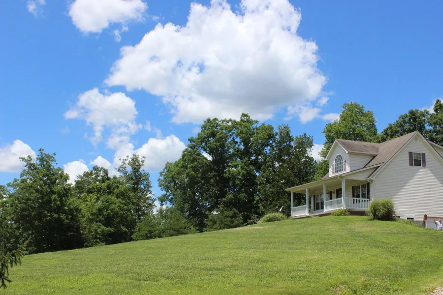 This rural home, well above road level, features a grand view. Overlooking the local golf course, pasture fields and the green hills you may never get tired of evenings on the front porch. The house sits on a full basement with one car garage, bedroom and half bath. Also in the basement is a wood heater for suplemental heat. The main floor features a bedroom, full bath and utility room along with the kitchen, dining area and living room. Upstairs is the master bedroom and bath, and a playroom. There is also a metal building detached from the house that acts as a garage, or a shop, or a barn if needed. The, just over 3 acre lot is both open and wooded. Don't miss this one.