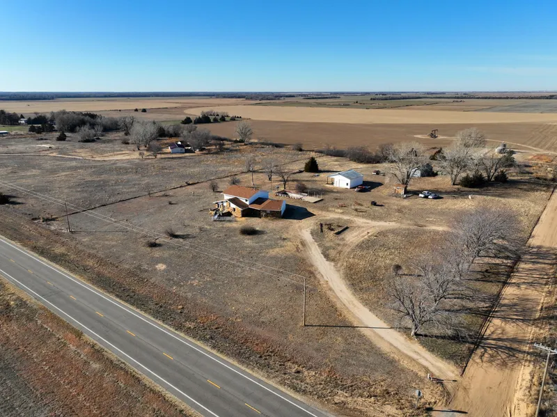 Located on Highway 281, only 5 miles south of St. John, Kansas, you will find this spacious country home with 5 acres for sale. Not only will this home fit a family of 5, but it would also accommodate a large group of hunters, creating a hunting lodge feel. With 5 large bedrooms and 3 bathrooms, the room in this house feels never-ending. Beautiful stone siding wraps around the bottom half of the house with no maintenance involved. 2 metal buildings located on the west side of the property provide a working shop area and storage for vehicles and equipment, which comes in very handy while living in the country. A doghouse and RV hook-up also exist. The house is fully wheelchair accessible with ramps and 36” doorways. Central heat and air on the main floor and upstairs bedrooms will need an air supply installed. All appliances and furniture will be included in the sale besides the microwave. There is a jacuzzi whirlpool tub in the main bathroom with a double sink and shower. Custom cedar wood and Lava Rock from Idaho Falls have been installed in the living room, making for a rustic country-type feel. Make sure to notice in the photos just how much value the furniture and appliances add, having all this move-in ready is a huge addition. A water well with excellent water supplies the house with no signs of hard water. If you are interested in a very open type of layout, this home is for you! The seller would like this property to sell “as is.” And with Quivira National Wildlife Refuge only 23.5 short miles away and the Cheyenne Bottoms Wildlife Area only 34.5 short miles away, there are many recreational opportunities to enjoy; wildlife viewing, photography, fishing, hunting, hiking, and biking. Call one of the listing agents today to see this home located in the country just south of St. John!