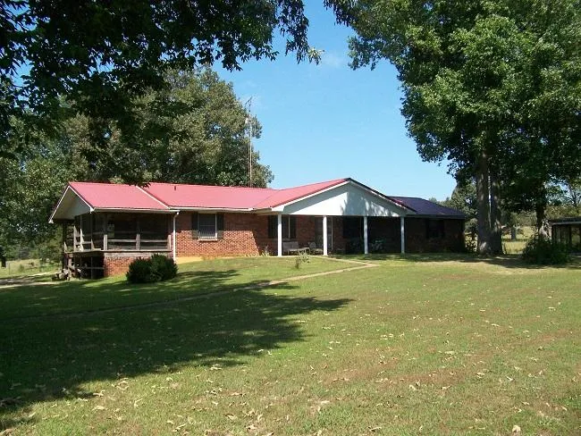 4 Bedroom 2 bath brick home with fireplace, central wood/electric heat, central air. Home has finished basement, screened in 10x28 area with picnic table, garage & 30x40 implement shed, drilled well, all on 52 acres m/l on paved highway.