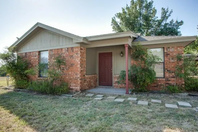 Imagine country living in this beautiful brick home located on 2 acres. Interior offers living room with crown molding, tray ceiling, breakfast area, wood & tile floors. Covered back porch has wide open view of Texas landscape. Fenced back yard is perfect for family and pets. Small fire pit just off the carport would be perfect for sitting round the campfire. Storage building is included.